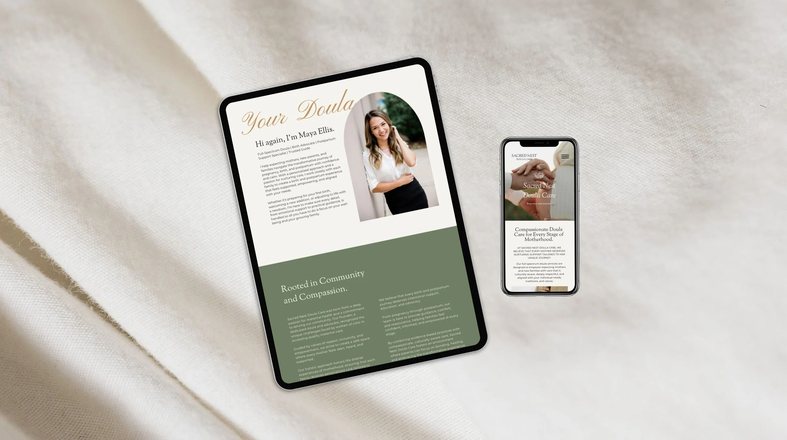 A soft, grounding design for doulas and birth workers wanting a peaceful, nurturing online home.